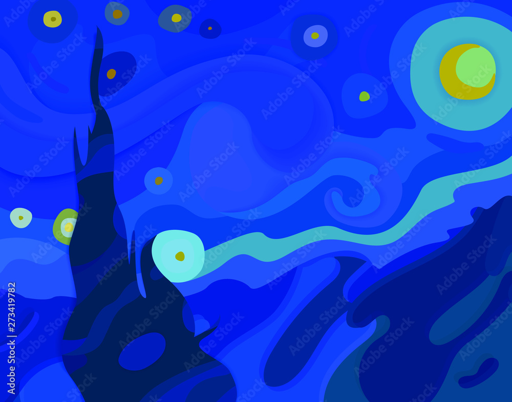 Vector Illustration Inspired By The Painting Of Vincent Van Gogh Moonlit Night Glowing Moon And Starry Sky Abstract Background Wall Mural Kulikov Nikolay